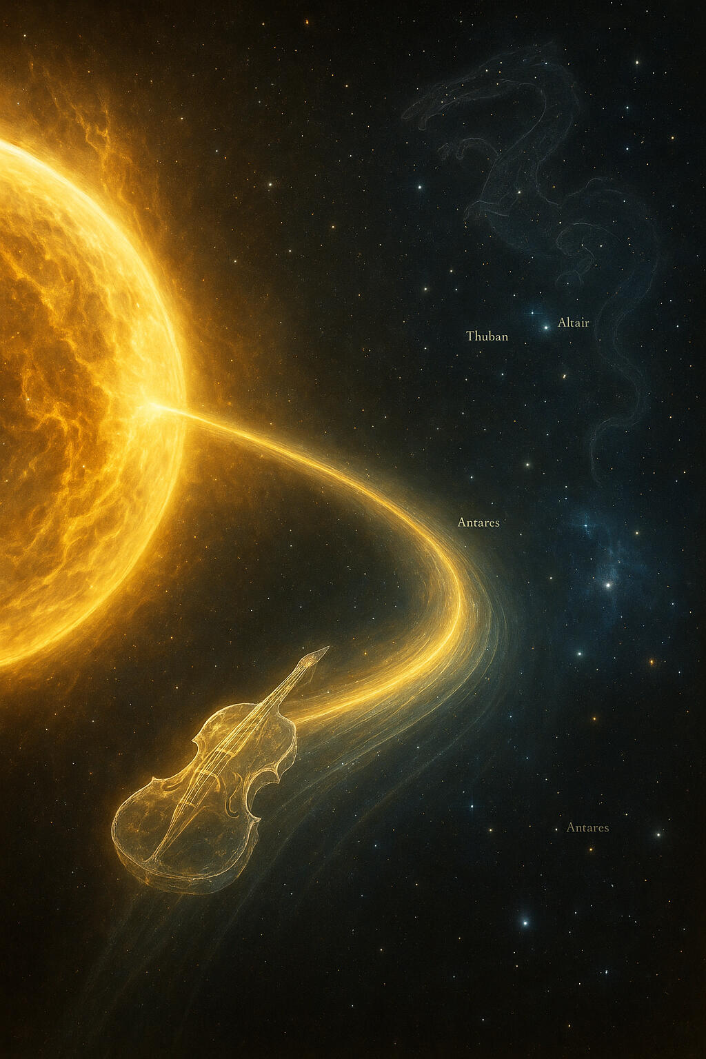 (Real exoplanet, officially named through the IAU Name ExoWorlds campaign)Constellation: Delphinus (The Dolphin)Distance from Earth: ~245 light-yearsNaming Origin: “Musica” — to honor the art of musicAntares — The One Formed of Tone and TimberHe Is Made by Music — Produced from Nature’s VoiceHis body: Maple, Walnut, Mahogany, Cedar, Ash, Spruce, Rosewood, Blackwood, Boxwood.His skin: Hide of Deer, Elk, Goat, and Horsehair.His voice: A symphony carried by ancient lives, spirits and instruments —