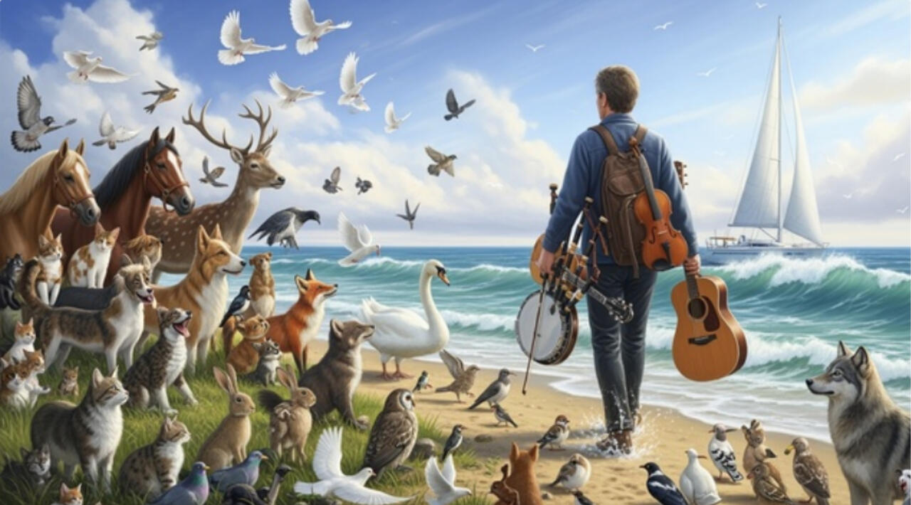 echoing across the skywave of blue ocean waters, tuned by the tides of memory.